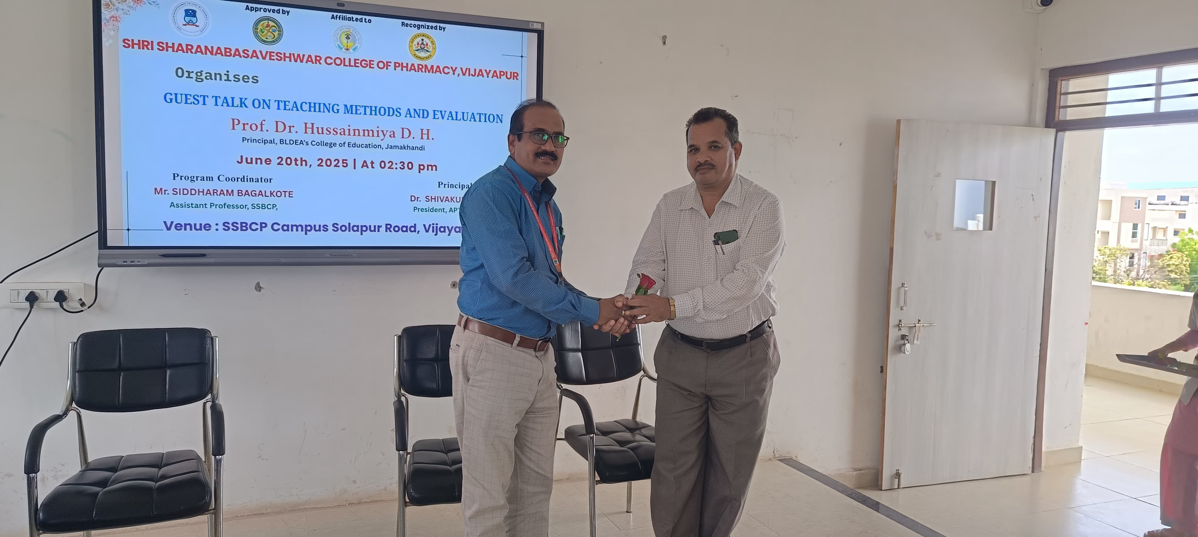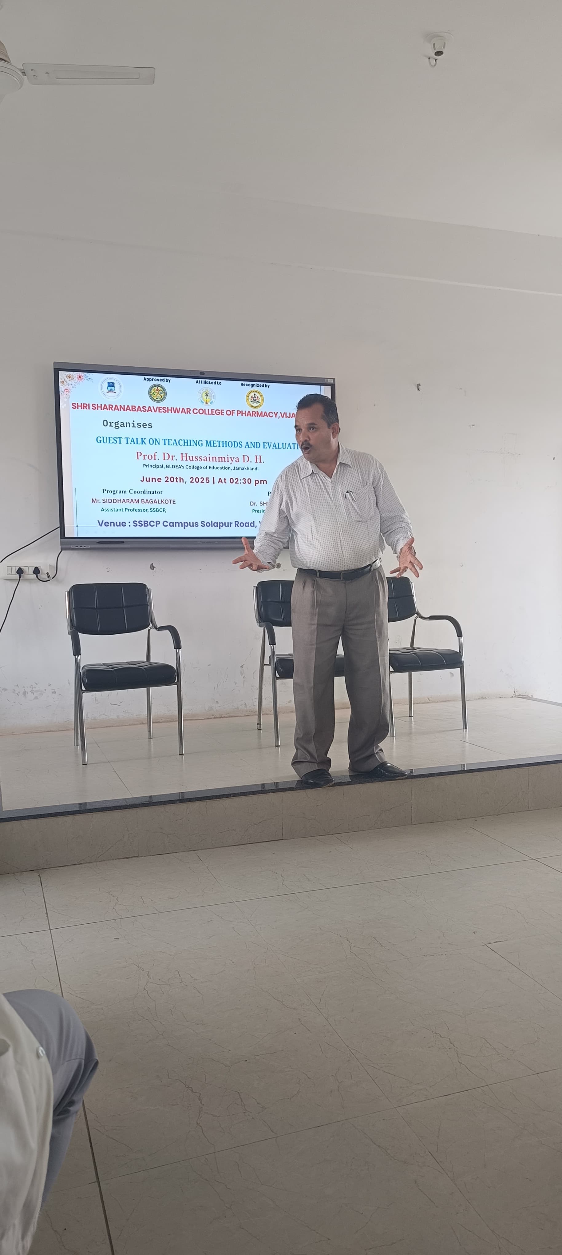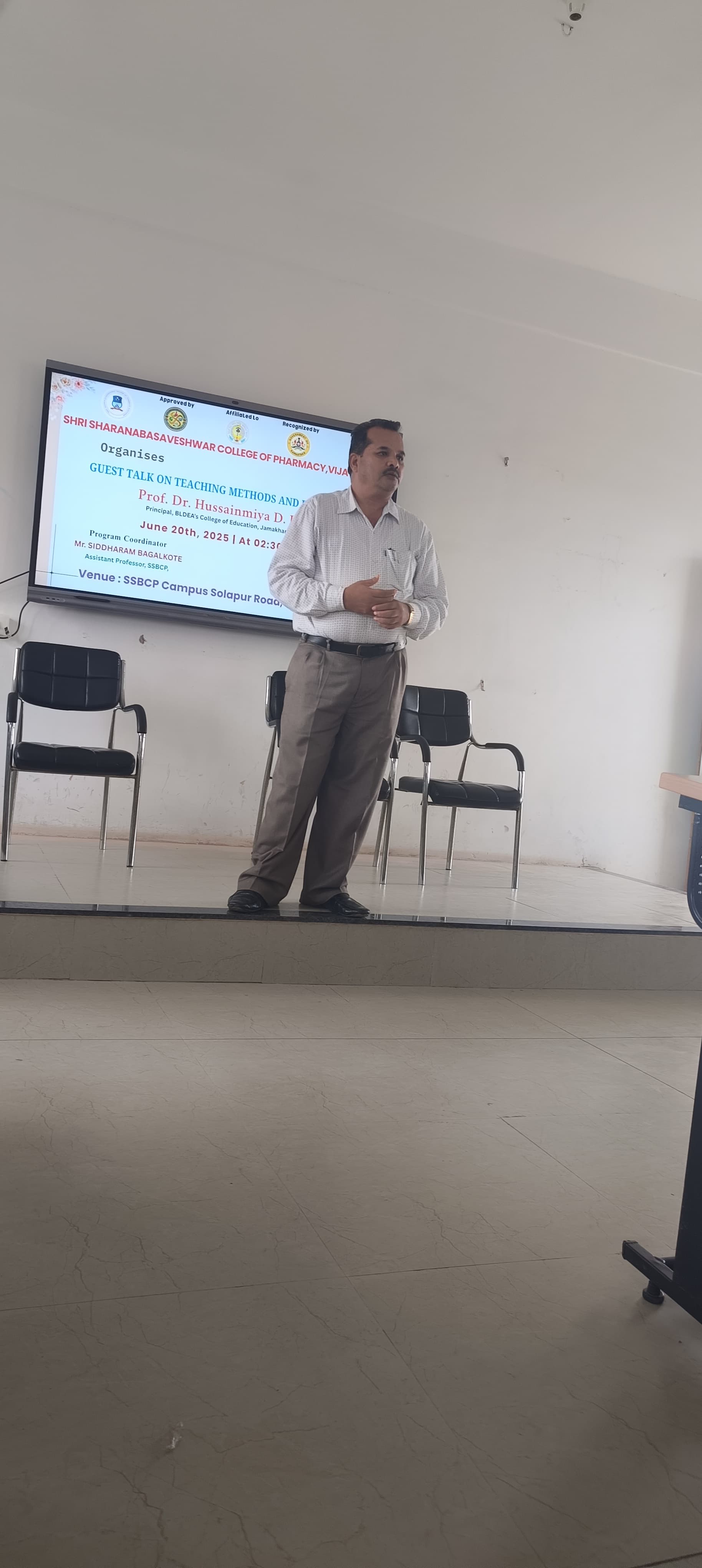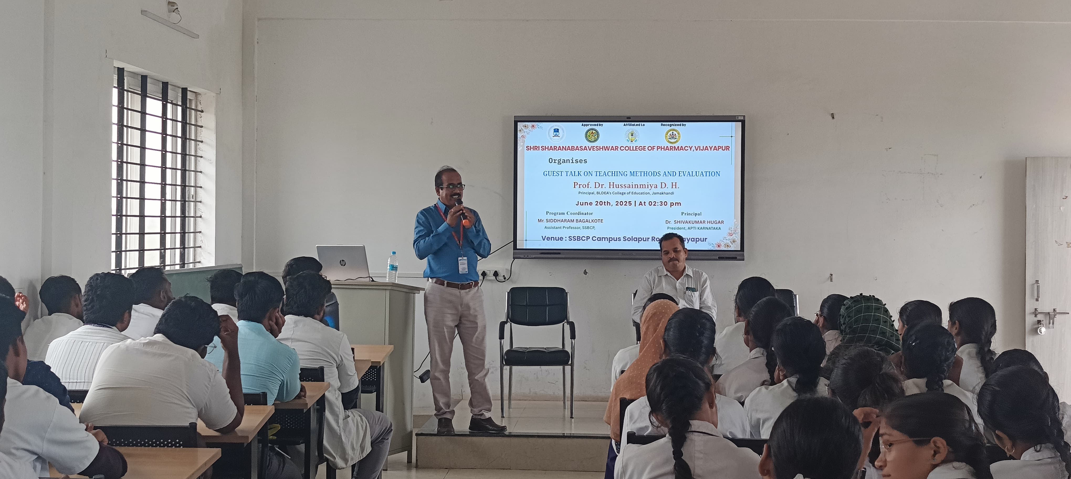Guest Talk on “Teaching Methods & Evaluation” was organised at shri Sharanabasaveshwar College of Pharmacy, Vijayapur on 20th June 2025 at the college seminar hall.
