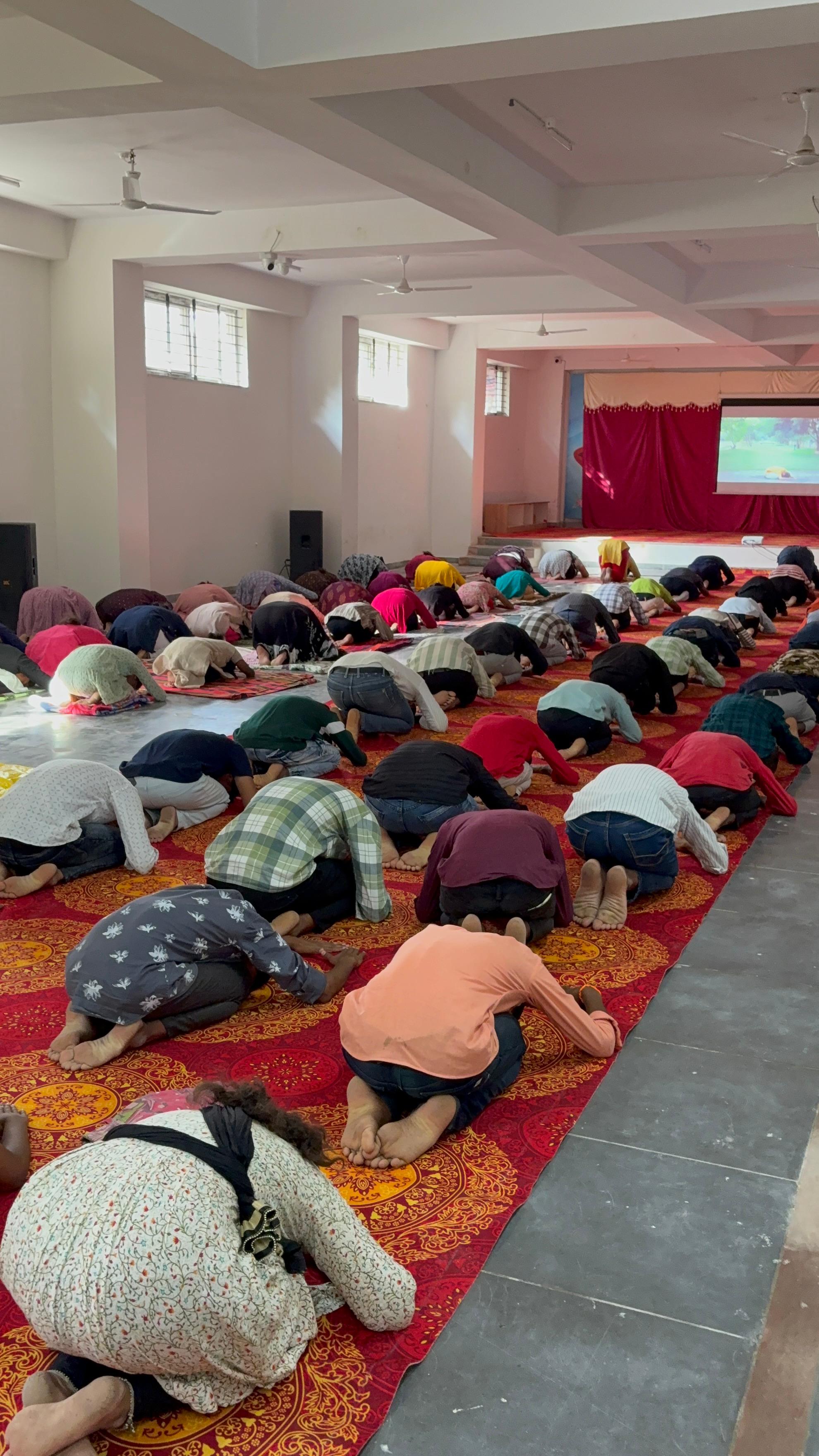 A structured yoga session was led by trained instructors Mr. Shrikant and Mr. Appasaheb, involving over 150 NSS volunteers, students, and staff members. The session included: