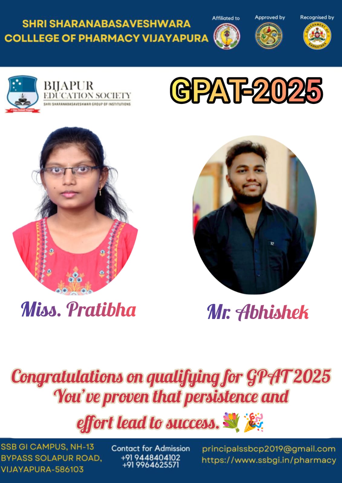 For their remarkable success in the 🎓 Graduate Pharmacy Aptitude Test (GPAT) – 2025