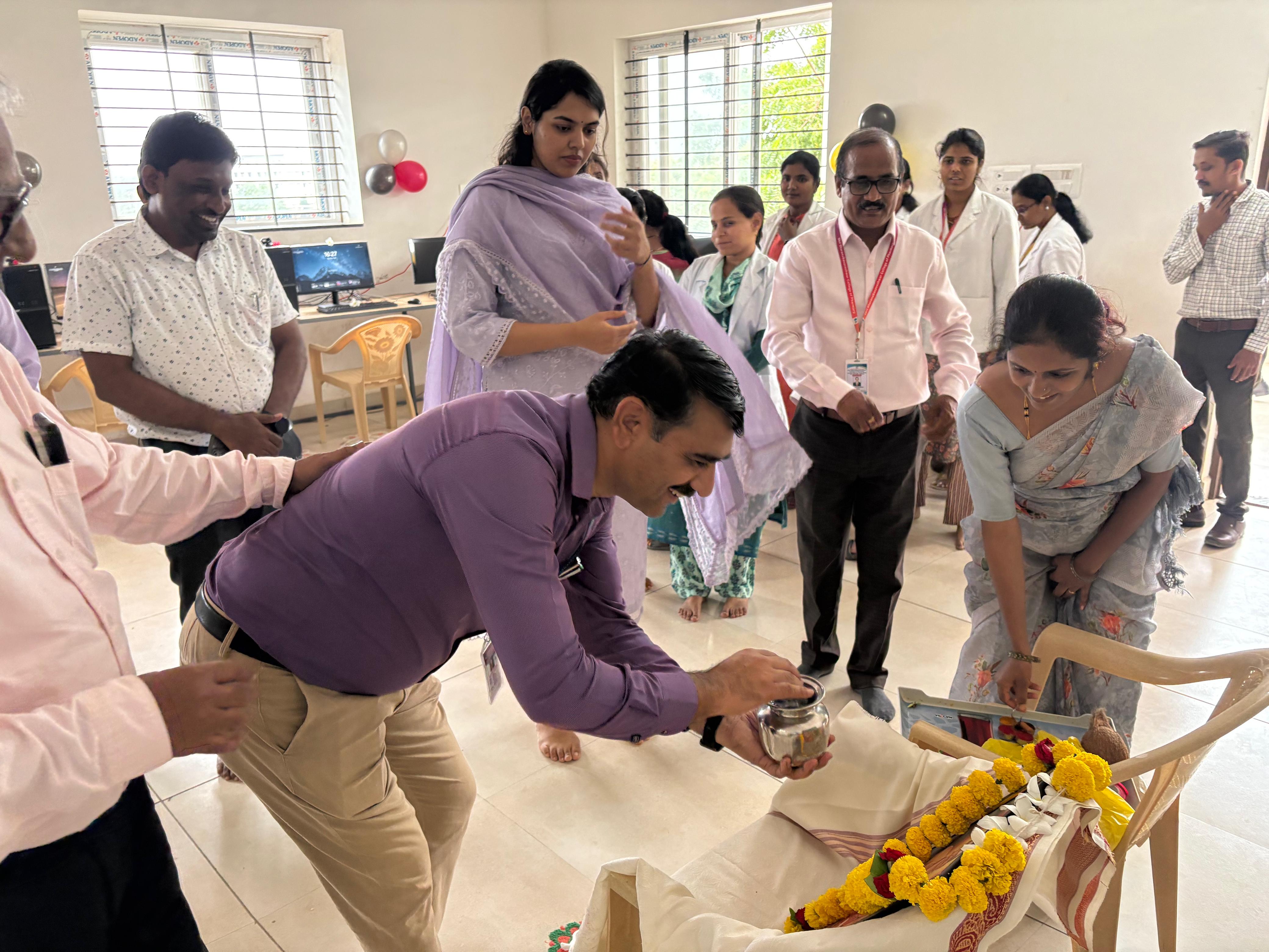 The RGUHS Digital Valuation Centre was ceremoniously inaugurated at the Shri Sharanabasaveshwar Group of Institutions (SSBGI) campus in Vijayapur . The inaugural event was graced by Miss Samprada S. Patil, Executive Director , SSBGI, and Dr. Mahendra Kapse CAO The ceremony witnessed the presence of Dr. Shivakumar Hugar, Principal, SSB College of Pharmacy , Mr. Iranna Shiral Shetty, Principal, SSB College of Nursing (SSB CN), and Mr. Prajawal, Principal , SSB PU Science College, along with faculty members from all constituent colleges of the group.